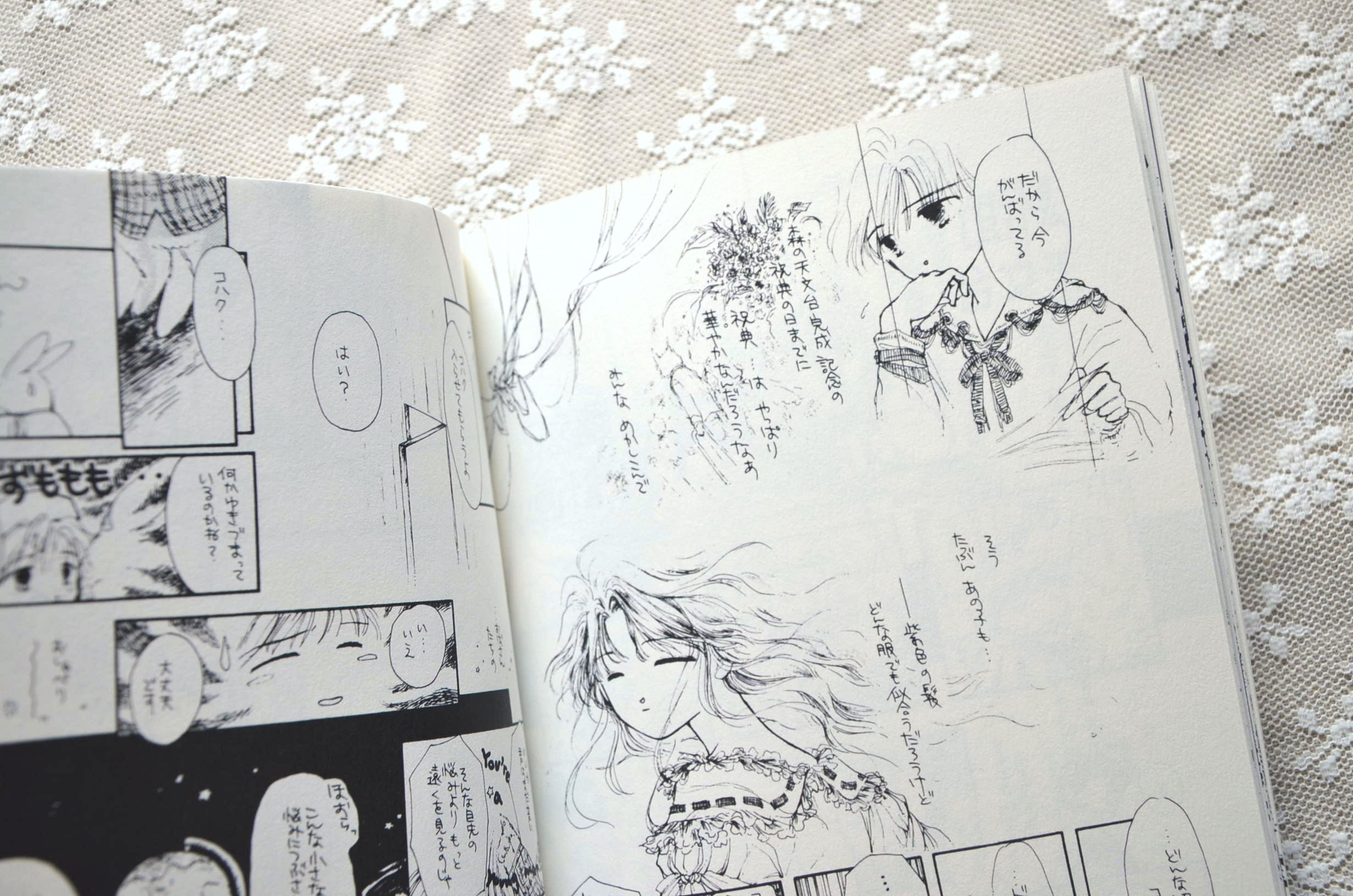 嘉川きなりが10代の頃に作った個人誌「天体硝子の森」とそのおまけ本の2冊を再編集した本です。